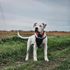 Legacy is an outstanding 24", 78 lb fit female with plenty of size and good all around type, and moves like a dream. She has a very forward, confident outgoing nature yet with excellent handler focus and desire to work. Her prey and defensive drives in work are very clear. She earned 2 Best in Show Puppies and finished her Jr CH by 4 months old. At 12 months she took a Best in Show under Jukka Autio earning her CH. October 2023 she earned a Best in Breed and 3 Champion class wins in heavy competition, plus additional CH win in April 2024, and earned her final win in August 2025. In UKC she comfortably finished her CH in 2024 and in September 2025 just 15 weeks post puppies, she rocked a huge UKC event taking 4 of 6 Best in Breed wins and a group placement with a lot of bulldogs and guardians. All this time being handled by a variety of handlers as I was handling Bolt.