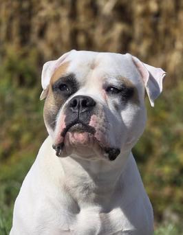 Dio is an absolute show stopper. A monster of a dog weighing in at over 100 lbs fit. He has so much bone and after 3, his head and neck have exploded. Pictures do not do this dog justice. He moves very nice with a powerful confident presence. He's also a worker...he has great prey drive and one hell of a grip in bitework. I'm really happy with this boy and am pleased to see him progress! I love that he's also a great family companion for his family, and I'm thrilled that his co owners enjoy him as much as I love watching him mature. Dio has a Best in Breed October 2022 and April 2024, and finished his Supreme Grand Champion title in June 2024.